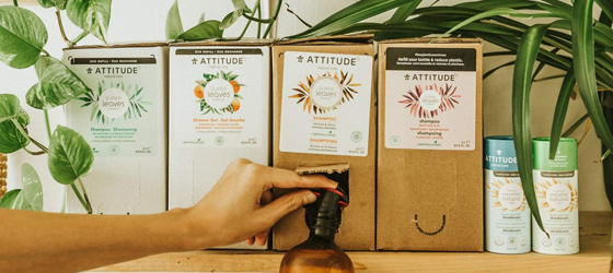 ATTITUDE est une entreprise québécoise qui conçoit et fabrique des produits de soins corporels et d’entretien ménager pour aider les familles à vivre sainement. Faites d’ingrédients naturels, ses diverses gammes (Peau sensible, Tout-petits, Solaire, Eczéma, Animaux, etc.) respectent les plus hautes normes de qualité et d’écoresponsabilité.